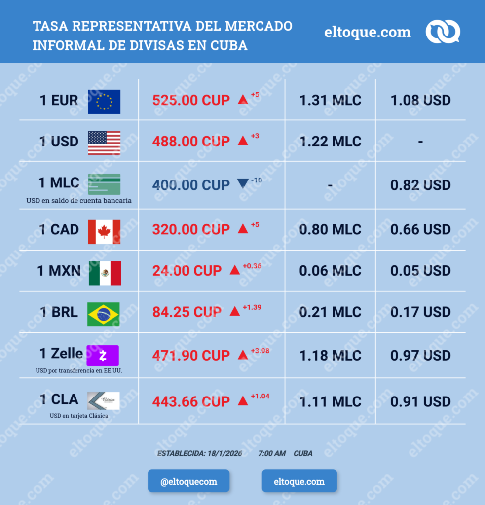 - Mejor Tasa de Cambio: Aunque es poca la diferencia, sigue siendo más alto el cambio de divisa extranjera. Por ejemplo, en enero de 2026, la tasa oficial es de 1€= 485 CUP mientras que la tasa de cambio informal es de 1€= 525 CUP