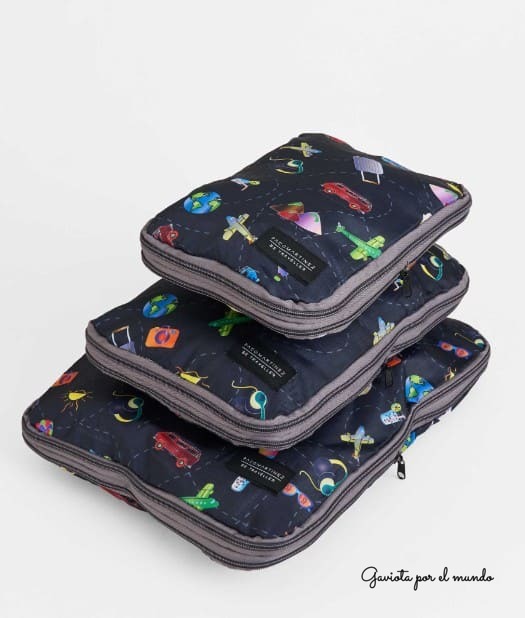 Uso estos que me regalaron por cumpleaños de Paco Martínez. Además, siempre llevo además, una bolsa para la ropa sucia y otra más pequeña para la ropa interior.