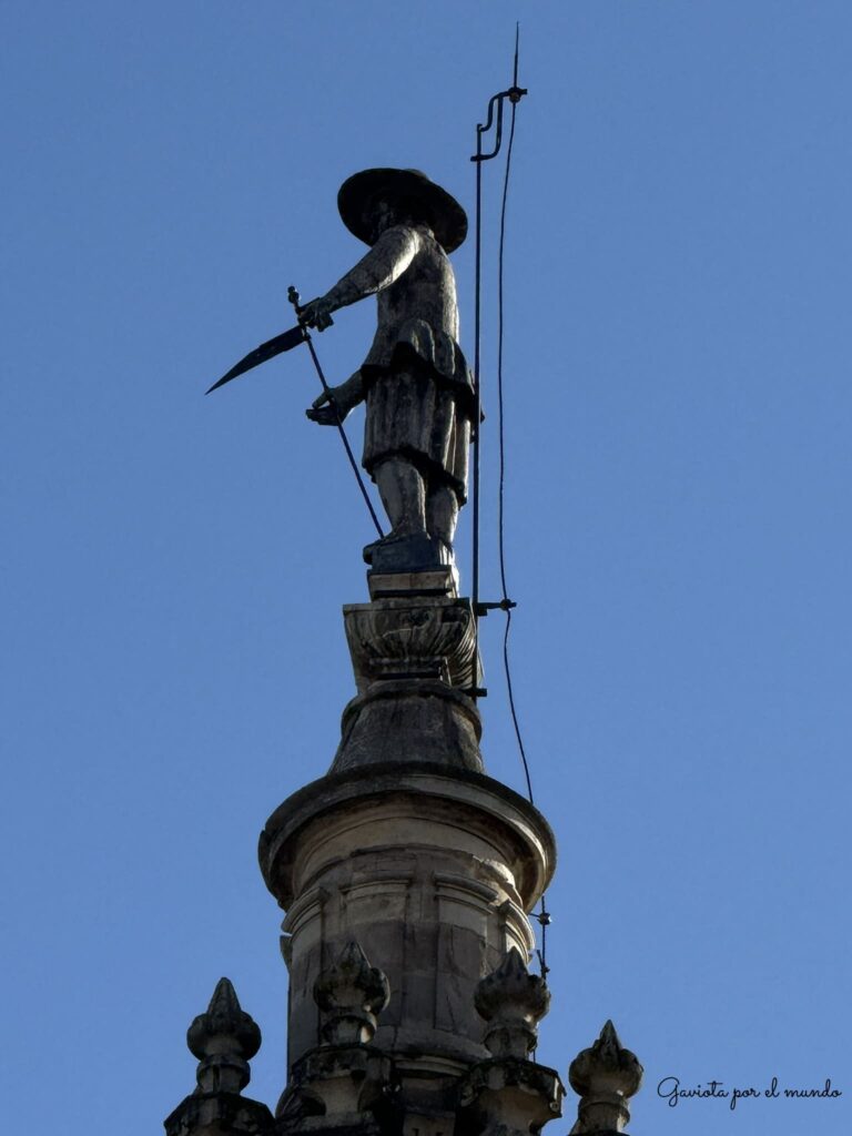 En la parte superior de la Catedral podrás ver una estatua curiosa de Pedro Mato, un arriero. El mismo lleva el traje típico de maragato.