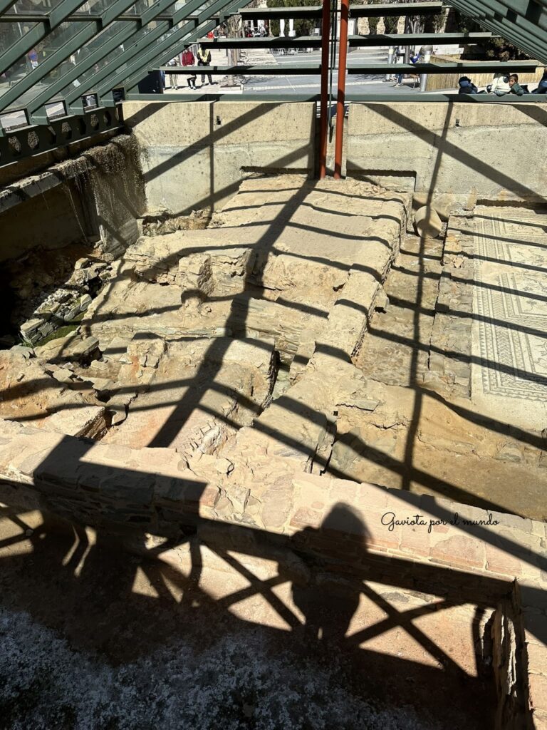 Nosotros solo pudimos ver la parte de la Casa romana donde se puede apreciar las estancias y el suelo.