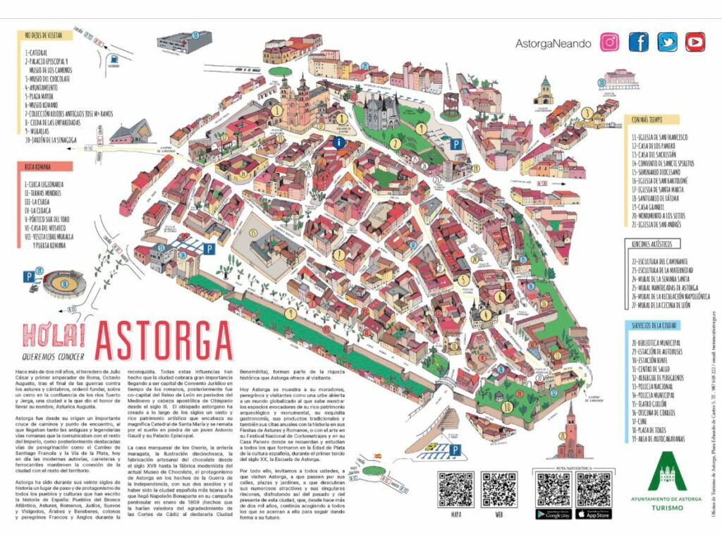 Puedes descargar este plano en este enlace, o pasarte por la oficina de turismo frente al Palacio de Gaudi para obtenerlo en papel.