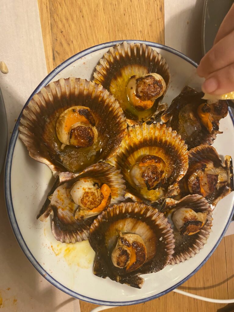 En el free tour coincidimos una pareja madrileña que habíamos visto en la Iglesia y nos recomendó un sitio para comer Zamburiñas y navajas, una excelente sugerencia, una parada que valió la pena. » La Cantina, vinos y viandas»